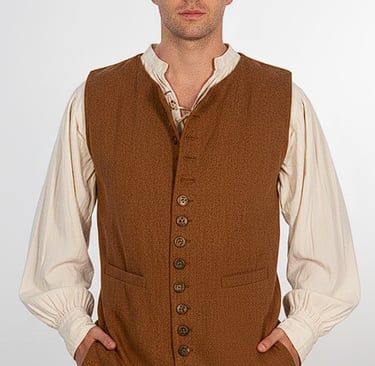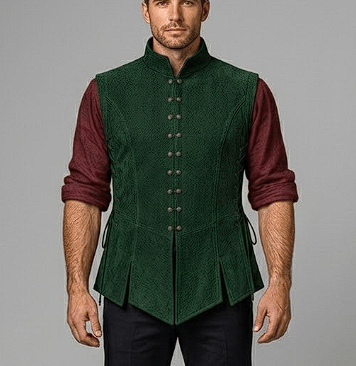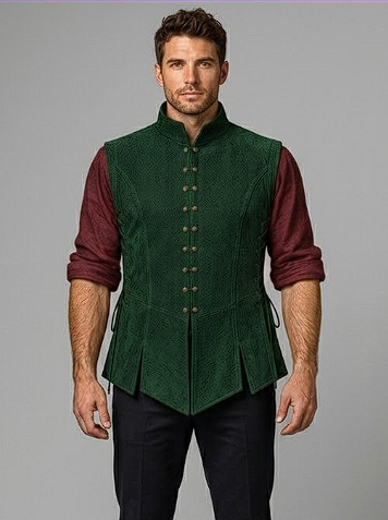 A refined Renaissance vest with a structured button front, standing collar, and side lace adjustments for a tailored yet comfortable historical fit.